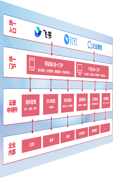 对协作平台提供支持服务,,支持企业应用与协作平台对接,,包含组织同步、、、、消息集成、、、、待办集成等。。支持目前主流的协作平台:钉钉、、、企微和飞书。。。